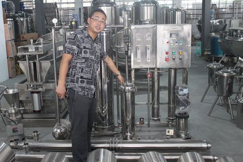 In order to let employee know more about our products and solve practical problems for the customer better, we have a products knowledge training about soy-bean production line, tubular sterilizer, water treatment, stainless steel container on August 11, 2014 afternoon. The following picture is the technical engineer conducting the detailed introduce about consists equipment of soy-bean production line: