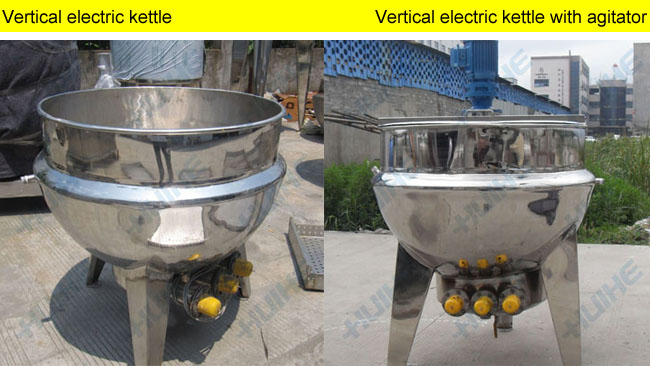Vertical electric heating jacketed kettle is mainly composed of pot and arm-brace,and the pot is the double layer structure formed by inside and outside spherical pot, middle layer can add heat conduction oil or water to heat.