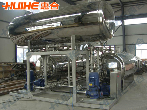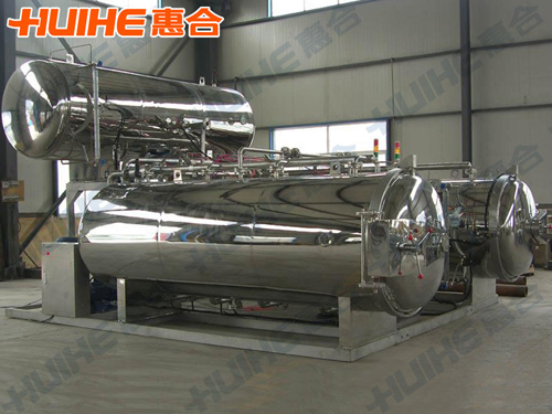 This kind of autoclave/sterilizer (vessel) adopts high temperature and high pressure hot water principle, make various food of high temperature, quickly sterilizing treatment, food in the device for slow in turn, make heat conduction more quickly and even, shorten the sterilization time, so as to achieve the high temperature, short-term sterilization effect and stable product quality, is widely used in the food, beverage and canned industry.