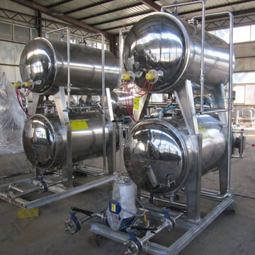 降溫時,外界的涼水直接進(jìn)入殺菌室與食物接觸,迅速降溫。殺菌完肝,高溫的水被回收到有保溫的熱水罐內(nèi),保存熱量不被散失,節(jié)約了大量熱能,且為下次殺菌做好準(zhǔn)備,節(jié)省了時間。