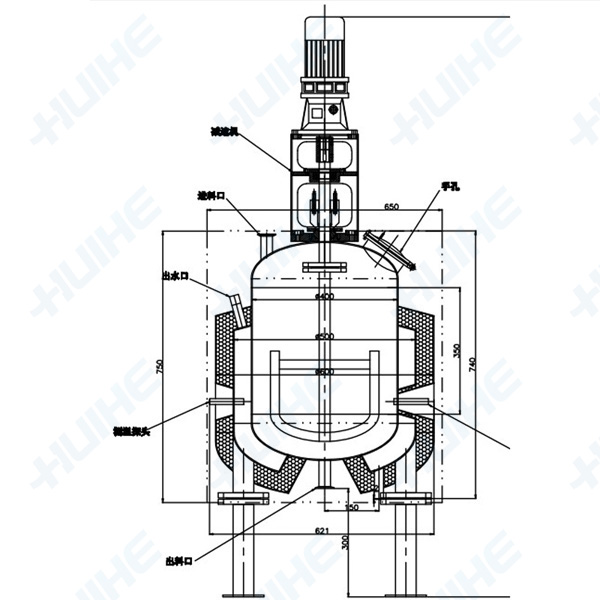 該反應(yīng)設(shè)備主要由鍋體、鍋蓋、攪拌器、夾套、支承及傳動裝置、軸封裝置等組成(可按工藝需要采用帶保溫結(jié)構(gòu)),根據(jù)物料生產(chǎn)要求和用戶所需而確定壓力、溫度、材質(zhì)、攪拌裝置類 型、轉(zhuǎn)速、密封結(jié)構(gòu)、加熱方式等進(jìn)行設(shè)計(jì)制造。
