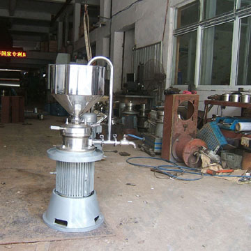 (五)打漿、細(xì)磨切下的玉米籽及刮取的漿液經(jīng)加入5倍重的水用打漿機(jī)打漿,篩孔直徑為0.5毫米,除去玉米軸碎片及其他雜物。然后再用膠體磨進(jìn)行細(xì)磨轉(zhuǎn)入攪拌缸中待用。