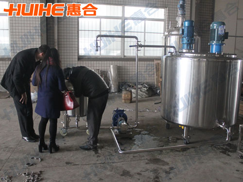 英國(guó)客戶需要加工類似蜂蜜的糖漿,欲采購(gòu)不銹鋼容器用于其產(chǎn)品的加工。經(jīng)過(guò)與業(yè)務(wù)員的多次溝通協(xié)商,客戶于2014年11月底在我公司訂購(gòu)1000L和100L各一臺(tái)乳化罐。歷時(shí)1個(gè)多月,設(shè)備終于順利完工。2015年1月9日,英國(guó)客戶來(lái)工廠驗(yàn)貨,業(yè)務(wù)員和技術(shù)工程師對(duì)乳化罐作了詳細(xì)的講解,客戶對(duì)設(shè)備較為滿意。