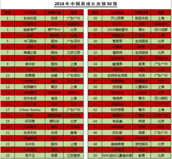 Entrepreneur’s Franchise 500? 1978年在美國由Entrepreneur首次舉辦,至今已舉辦39屆,是全球連鎖行業(yè)投資參考權(quán)威。2008年創(chuàng)業(yè)邦將Entrepreneur’s Franchise 500? 獨(dú)家引入中國,至今已成功舉辦8屆,旨在發(fā)現(xiàn)大中華地區(qū)更具良好成長潛力的特許加盟連鎖企業(yè)。2015年11月,創(chuàng)業(yè)邦投資開店推出新版網(wǎng)站——開店邦。開店邦延續(xù)創(chuàng)業(yè)邦投資開店的優(yōu)良基因,致力于“讓天下沒有難開的門店”,通過平臺(tái)完善的生態(tài)鏈和綜合性服務(wù)能力,助力中國優(yōu)秀連鎖企業(yè)的高成長,打造更多消費(fèi)域的明星企業(yè)和行業(yè)標(biāo)桿。