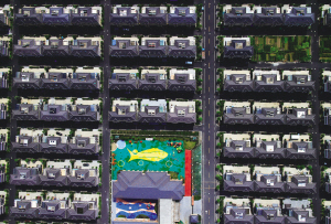 這一排排一模一樣的房子,在蕭山河莊街道,它叫向紅村。所有的房子都是按照一個圖紙建造,附近幾個村子都有一個統(tǒng)一的瓷磚顏色。