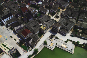 新葉古村,建于南宋嘉定十二年(1219年),位于建德西南大慈巖鎮(zhèn),是目前國內(nèi)更大的葉氏聚居村。航拍新葉時,正趕上浙江大學(xué)的研究生在測繪古村每棟房子的木建筑結(jié)構(gòu),說是為以后維修做參考。
