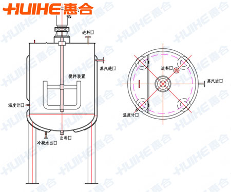 攪拌罐缸體、缸蓋、攪拌槳、進(jìn)料口、出料口均由不銹耐酸鋼1Cr18Ni9Ti制成,按GB741-80技術(shù)條件進(jìn)行,缸體內(nèi)拋光,內(nèi)有攪拌槳,起攪拌作用。