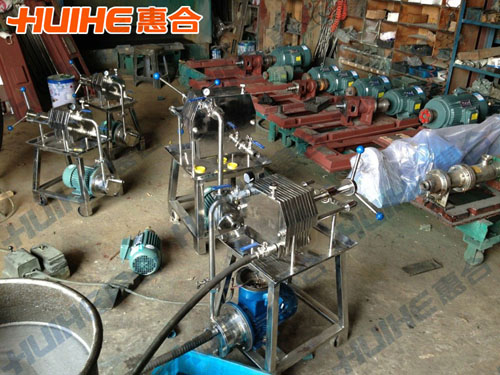 4、板框過濾器的泵(或可用防爆電機)及輸入管部件,采用快裝式連接,拆卸清洗方便。