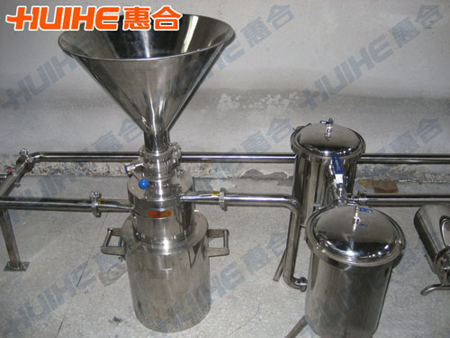 本機中與物料接觸的部分采用耐蝕不銹鋼材料。符合食品衛(wèi)生的要求。該機的工作是靠聯(lián)結(jié)在封閉電動機不銹鋼套軸上的翼輪來達到混合的目的,并由不銹鋼彈簧、壓緊密封圈、密封圈等組成機械密封裝置,進料斗與泵體用夾緊箍連接,電動機與泵座用螺栓連接在機架上,整機可作任意移動,可以不用固定的安裝基礎(chǔ)。