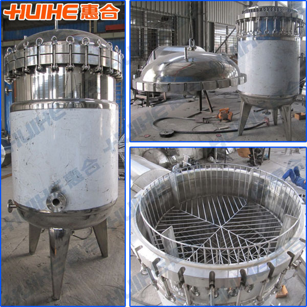 惠合生產(chǎn)的蒸汽蒸煮鍋也是一種通入蒸汽加熱物料的高壓蒸煮鍋,其材質(zhì)在客戶無(wú)特殊要求的情況下,內(nèi)外鍋體及撐角和可傾架等采用不銹鋼304或316L制造的。